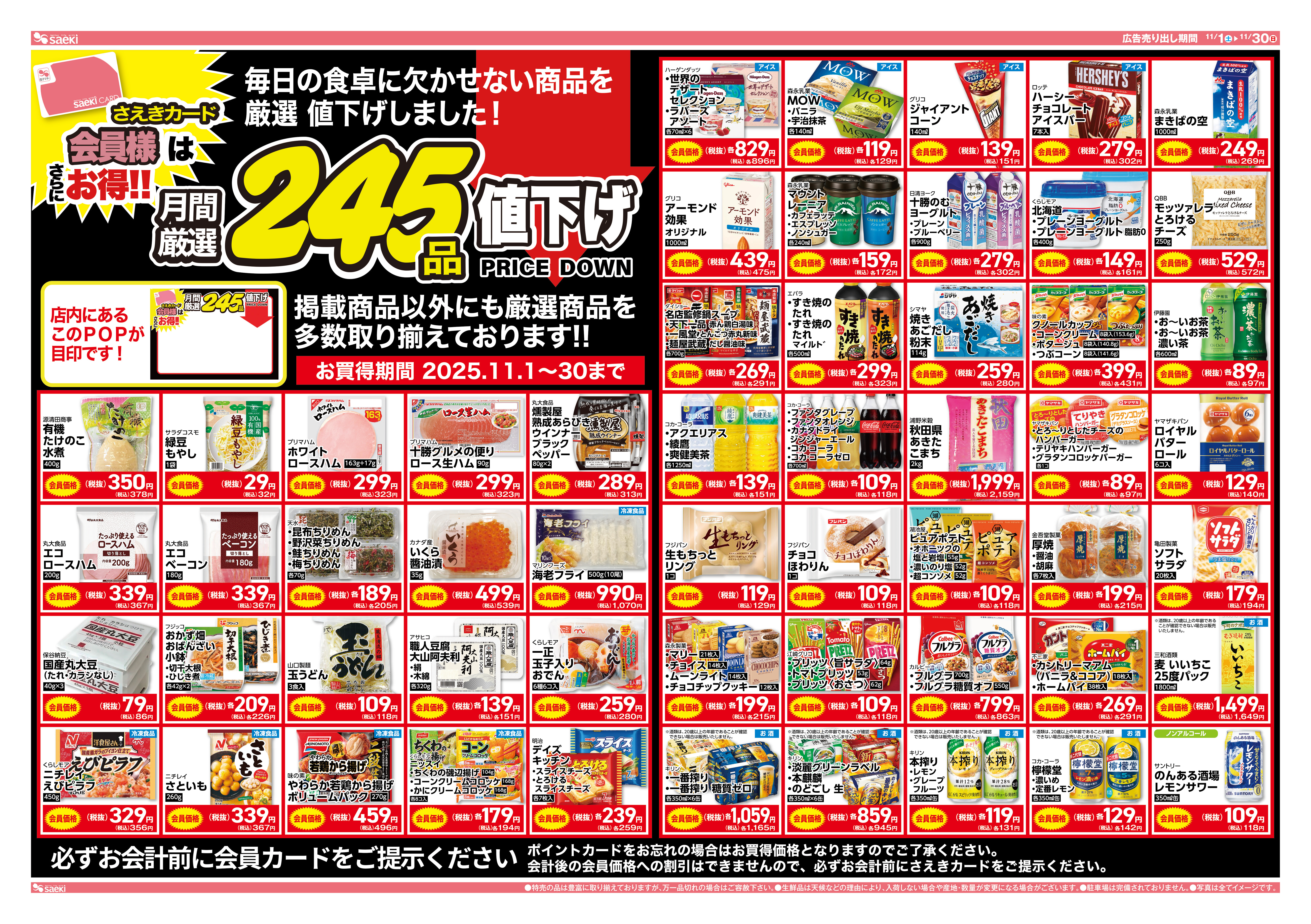 【月間厳選】11月は245品!! さえきカード会員様はお得です!!