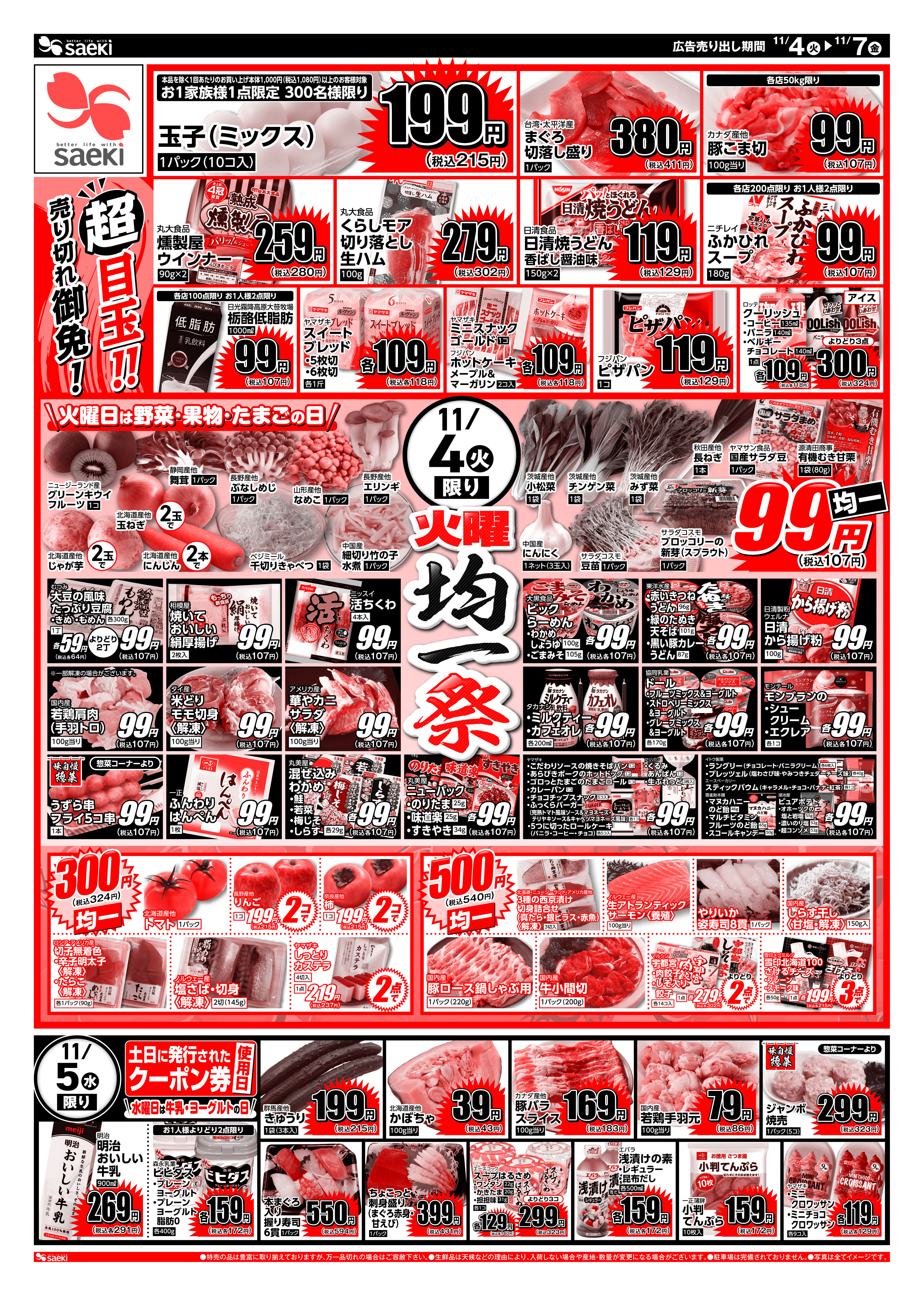 11/4~11/7 火曜均一祭 今週のお買い得