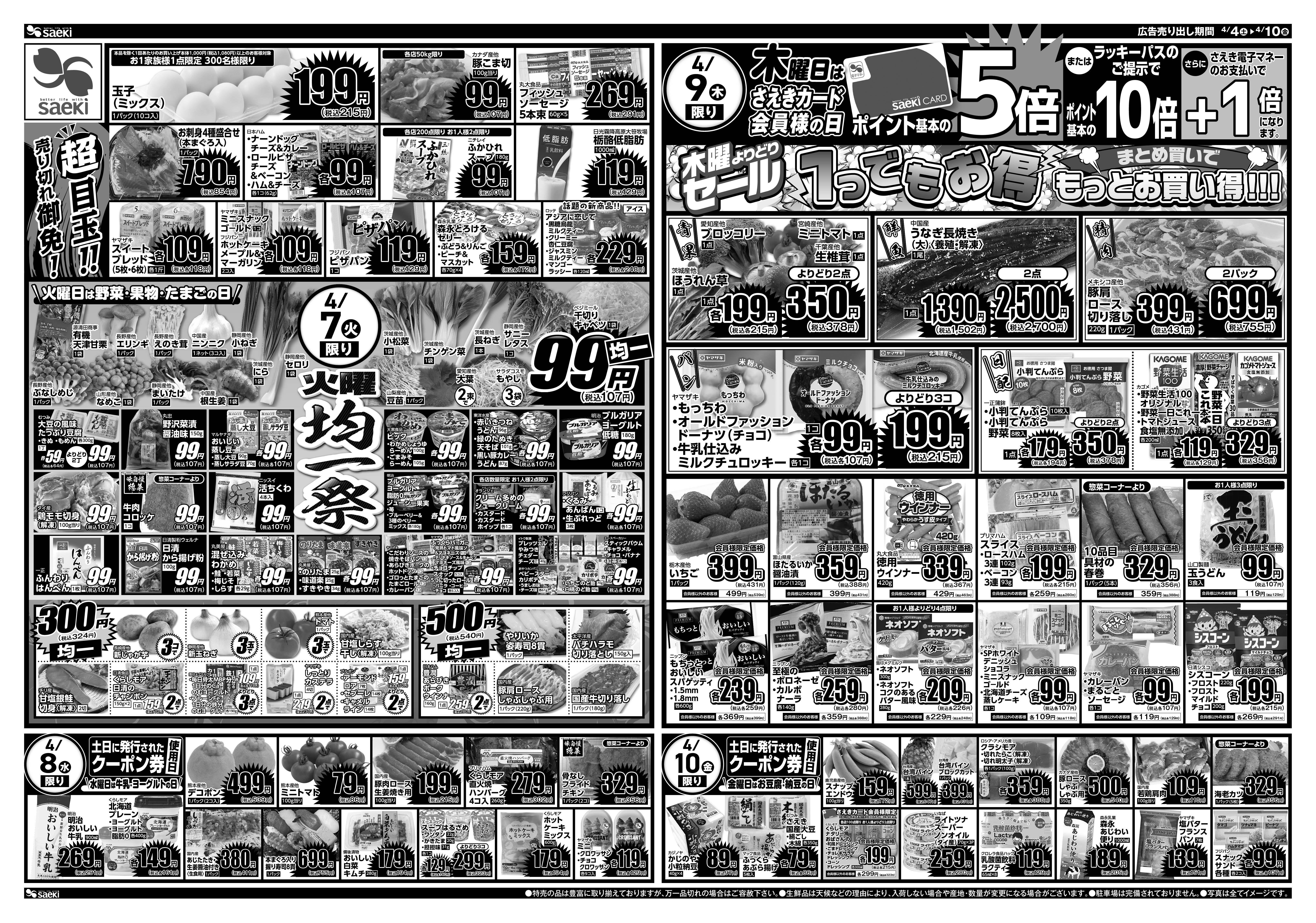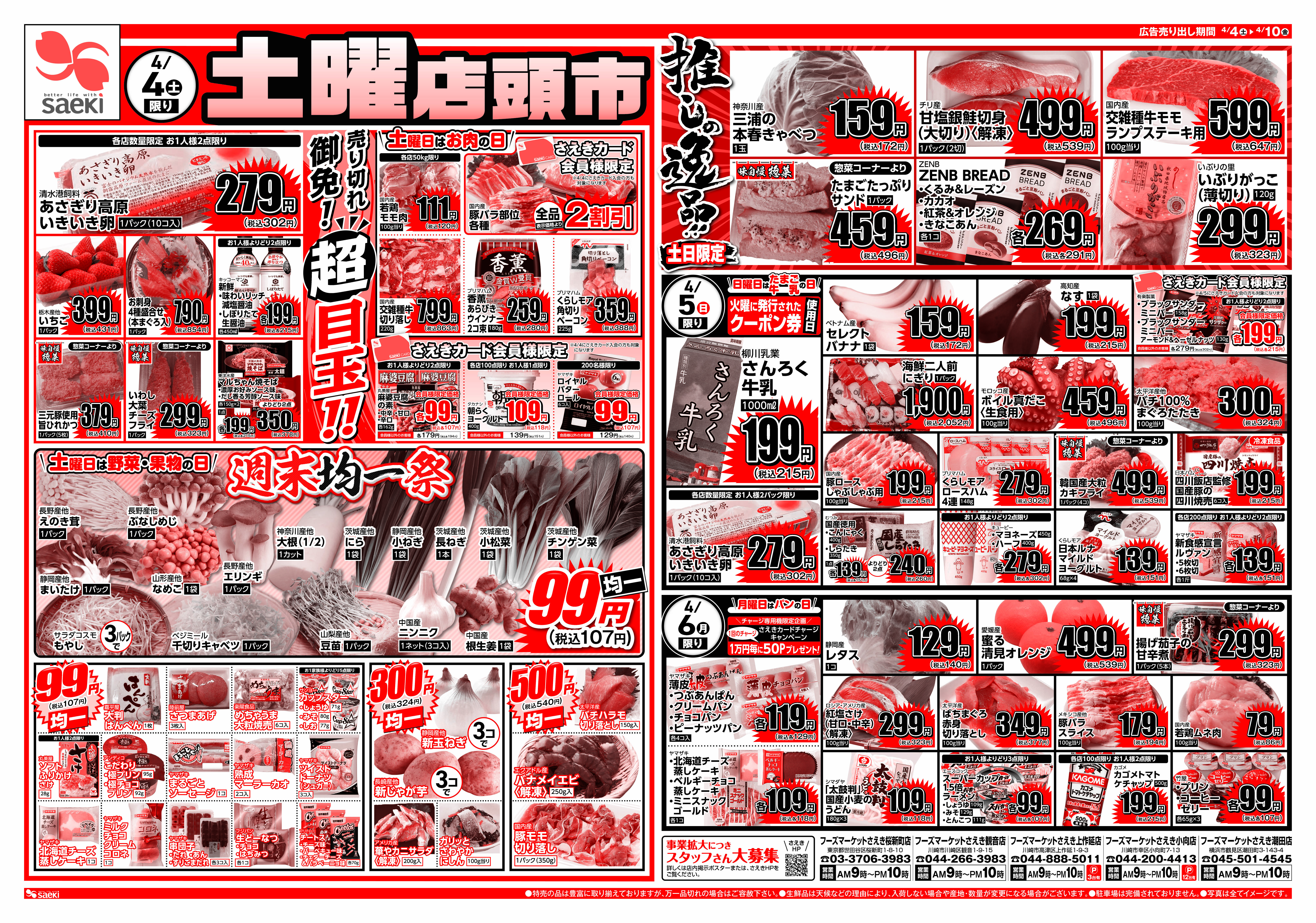 4/4~4/10 土曜店頭市 今週のお買い得~火曜均一祭 今週のお買い得