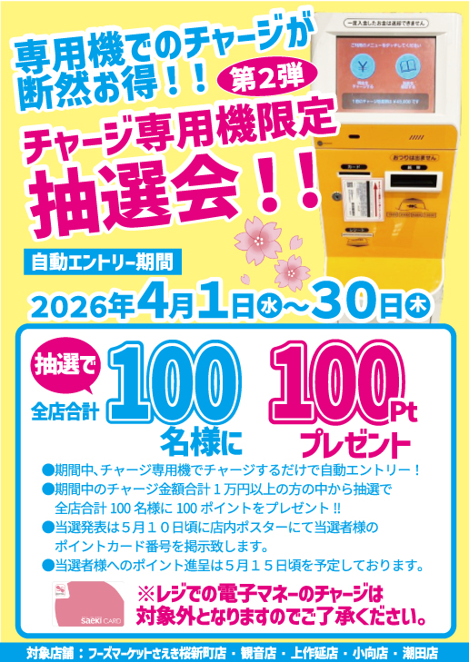 チャージ専用機限定 ポイントプレゼント企画(4/30まで)